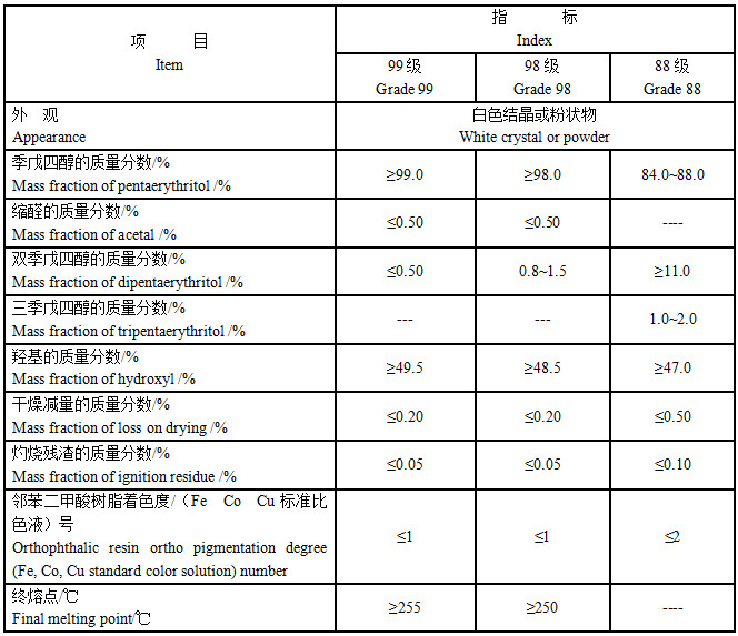 (1)產(chǎn)品用途與工業(yè)用季戊四醇相同外,98級、88級特級品季戊四醇主要應用于對雙季戊四醇和縮醛含量有特殊要求的產(chǎn)品。99級特級品季戊四醇主要應用于對單季戊四醇和縮醛含量有特殊要求的產(chǎn)品,如抗氧劑。