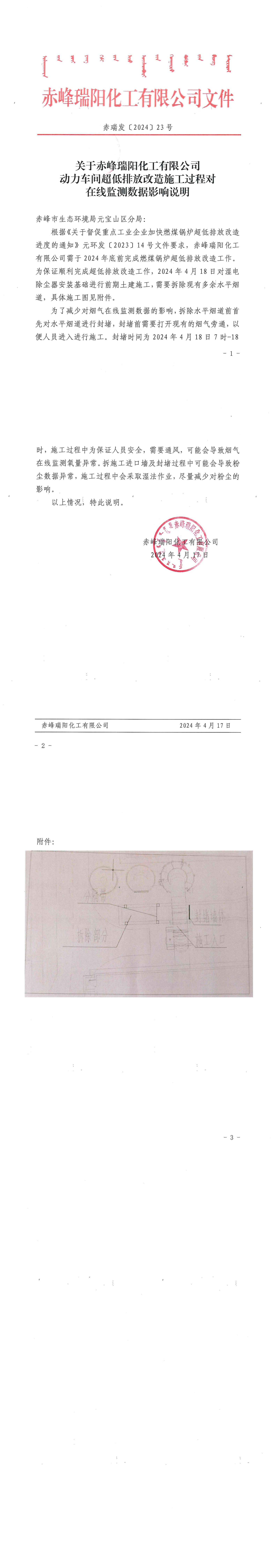 赤瑞發(fā)〔2024〕23號:動力車間超低排放改造施工過程對在線監(jiān)測數(shù)據(jù)影響說明